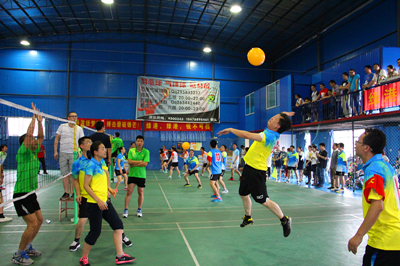 隨著主裁的一聲哨響,氣排球比賽正式開始。本次氣排球比賽以淘汰賽形式進(jìn)行,第一輪由“集團領(lǐng)導(dǎo)” 對陣“嘉通無敵隊”、“盛景榮隊”對陣“開心聯(lián)隊”、“克懼隊”對陣“萬方物業(yè)隊”、“勇港隊”對陣 “盛青隊”,兩方的隊員便開始了龍爭虎斗、各施絕技。各隊的參賽隊員都以昂揚的斗志迎接比賽,發(fā)球、起跳、攔網(wǎng)、扣球……各隊比分在裁判員的一次次翻牌中發(fā)生變化。最后,“勇港隊”、“嘉通無敵隊”、“盛景榮隊”、“萬方物業(yè)隊”成為4強隊伍,進(jìn)入半決賽。