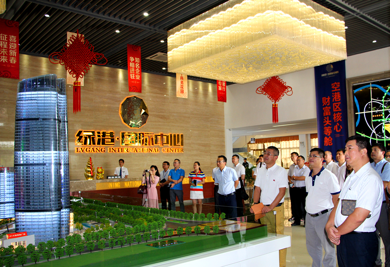 此次活動分為兩個行程,在黨委書記、董事長、總經(jīng)理楊東的帶領(lǐng)下,一行人員首先來到綠港國際中心售樓部進行參觀。通過觀看項目沙盤和商業(yè)宣傳片,參觀人員對經(jīng)開區(qū)的區(qū)位優(yōu)勢、產(chǎn)業(yè)特點、政策優(yōu)惠等有了較為深入的了解,同時也對綠港?國際中心項目及綠港集團建設(shè)的其他廠房項目產(chǎn)生了濃厚的興趣和合作意向。