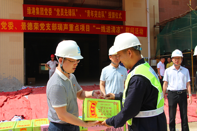 此次活動也是綠港集團(tuán)黨委在今年開展“四個一線”爭先鋒、創(chuàng)建黨建示范品牌工作以來,在項目建設(shè)一線開展創(chuàng)建“黨員攻堅先鋒隊”活動的重要舉措之一?!八膫€一線”是綠港集團(tuán)黨委圍繞經(jīng)開區(qū)黨工委加強(qiáng)基層黨建三年行動計劃,結(jié)合集團(tuán)公司項目建設(shè)、企業(yè)服務(wù)、招商銷售、項目融資的四個任務(wù),以“抓黨建促發(fā)展,抓品牌促提升”為主題,組織號召廣大黨團(tuán)員積極開展在項目一線創(chuàng)建“黨員攻堅先鋒隊”、在服務(wù)企業(yè)一線創(chuàng)建“服務(wù)示范標(biāo)兵(窗口)”、在招商銷售一線創(chuàng)建“一個黨員一面旗,我為綠港做代言”、在項目融資一線“爭做黨員領(lǐng)頭雁”的活動。活動開展以來,集團(tuán)黨建真正實現(xiàn)了“走前頭、作表率”的目標(biāo),引導(dǎo)集團(tuán)公司全體黨員干部轉(zhuǎn)變工作作風(fēng)、提高工作效能、強(qiáng)化服務(wù)意識,在促進(jìn)綠港集團(tuán)樹立國企黨建標(biāo)桿,不斷提升社會形象起到引領(lǐng)作用。授旗儀式結(jié)束后,綠港集團(tuán)與會領(lǐng)導(dǎo)還給項目一線參建人員送上了王老吉、西瓜水果等清涼慰問品,鼓勵他們繼續(xù)發(fā)揚(yáng)綠港鐵軍精神,急難險重顯身手,同時要注意防暑降溫、保重身體,更好地為項目建設(shè)做貢獻(xiàn)。(綠港集團(tuán) 陽正輝、張彩秀/文、圖)