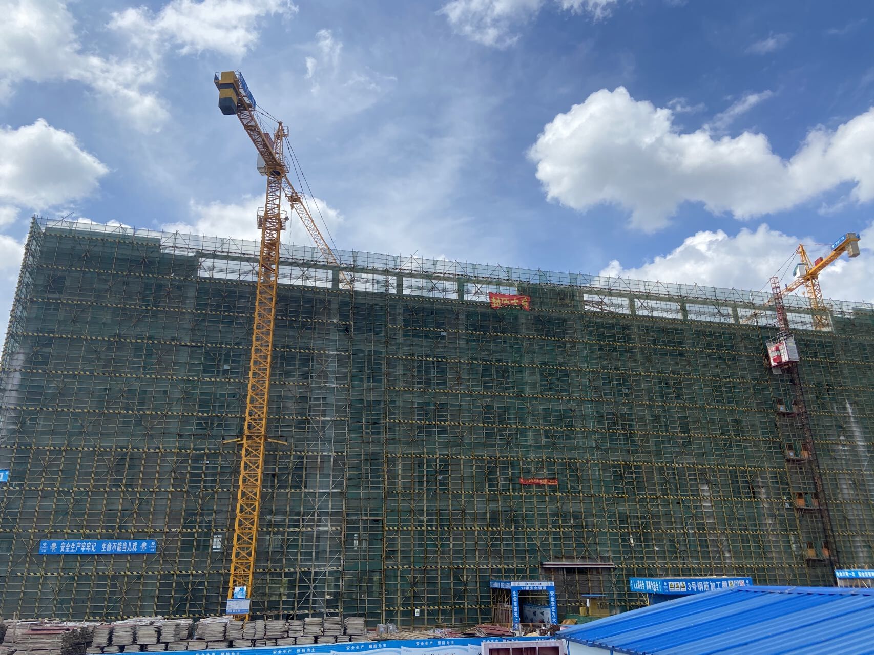在項目施工過程中,綠港集團堅持做好項目各樓棟臨邊防護標準化、用料場地封閉標準化、設置安全宣傳長廊、裸土覆蓋措施、塔吊與道路噴淋系統(tǒng)、車輛沖洗系統(tǒng)、門禁與實名制管理系統(tǒng)、安全交底和特殊工種教育等工作,每周召開安全文明施工專項會議,對于安全文明月度檢查發(fā)現(xiàn)的安全隱患問題項目部做到高度重視,積極安排安全員專人跟蹤整改,在規(guī)定時間內(nèi)按標準化要求整改完成。項目部積極開展安全演練、知識競賽、安全會議、班組活動、三級教育等活動宣傳安全生產(chǎn)知識,進行安全生產(chǎn)教育,增強建設人員安全生產(chǎn)意識。